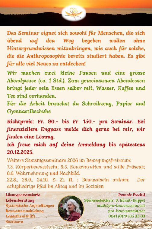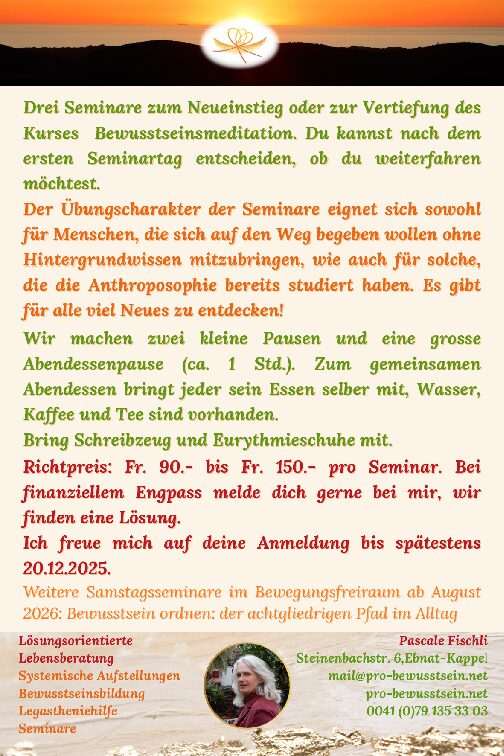 Mein Leben nahm 1968 in Bern seinen Anfang. Nach der Schulzeit durchlief ich eine musikpädagogische Grundausbildung in Bern sowie eine 4-jährige Ausbildung zur Sozialtherapeutin auf anthroposophischer Grundlage im Humanus-Haus Beitenwil.