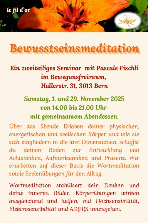 Mein Leben nahm 1968 in Bern seinen Anfang. Nach der Schulzeit durchlief ich eine musikpädagogische Grundausbildung in Bern sowie eine 4-jährige Ausbildung zur Sozialtherapeutin auf anthroposophischer Grundlage im Humanus-Haus Beitenwil.